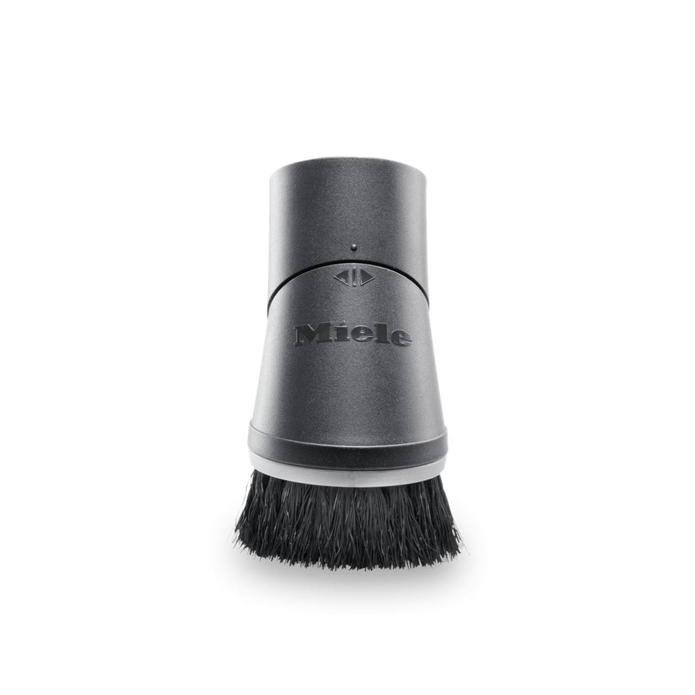 Dunkelgrauer Bürstenaufsatz von Miele für Staubsauger, mit schwarzen Borsten.